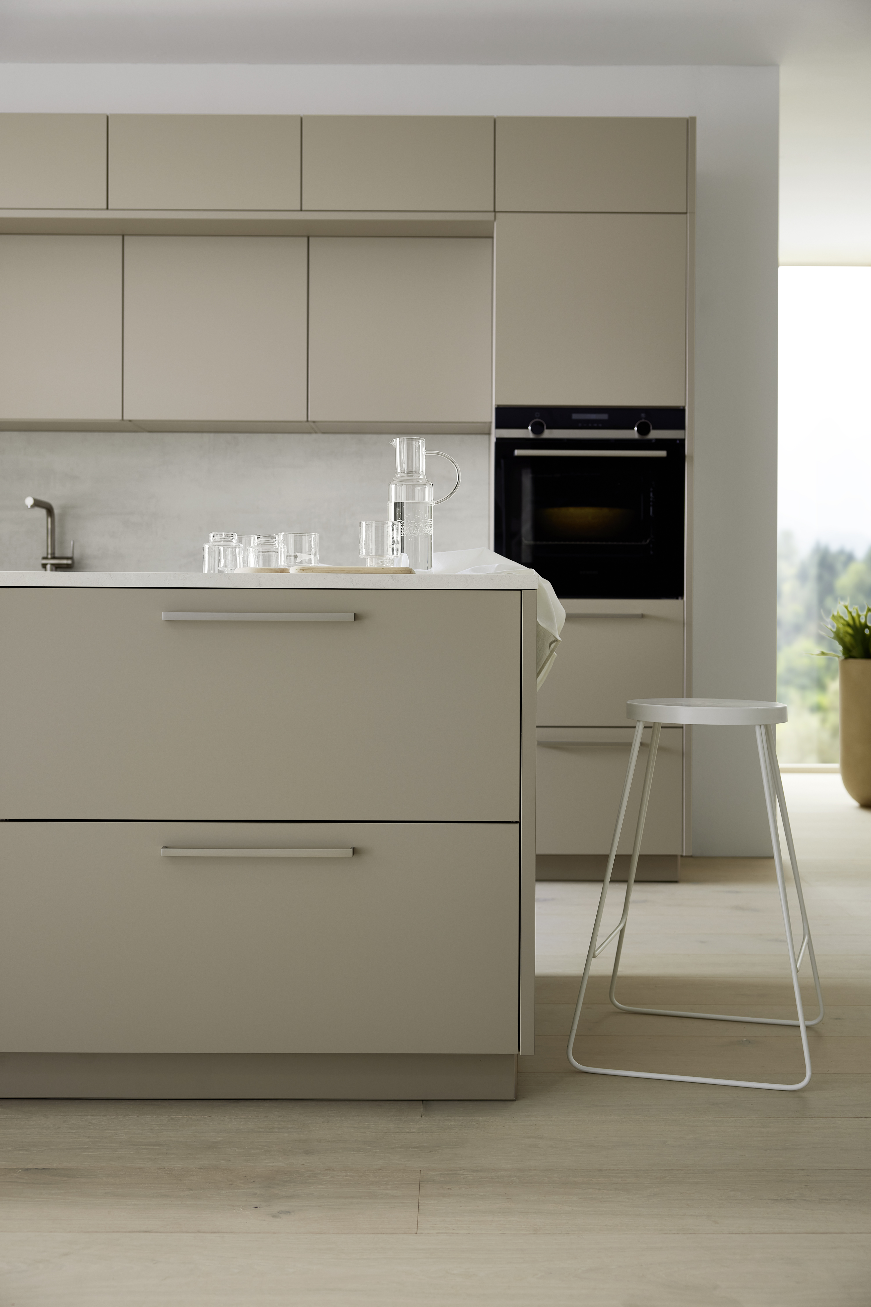 Mit der Einführung der 800 mm hohen Unterschränke bietet Nolte eine flexiblere Gestaltung der Küchenräume. Diese neue Höhe ermöglicht die Integration von Auszügen mit einer Höhe von 400 mm für zum Beispiel Getränkekisten oder unter anderem Schubkästen mit einer Höhe von 200 mm. Diese Optionen gewährleisten nicht nur eine noch bessere Raumausnutzung und zusätzliche Stauraummöglichkeiten, sondern tragen auch zu einer modernen Optik bei. So verbindet Nolte Funktionalität mit einer ästhetischen Gestaltung – und setzt somit einen neuen Designstandard.
